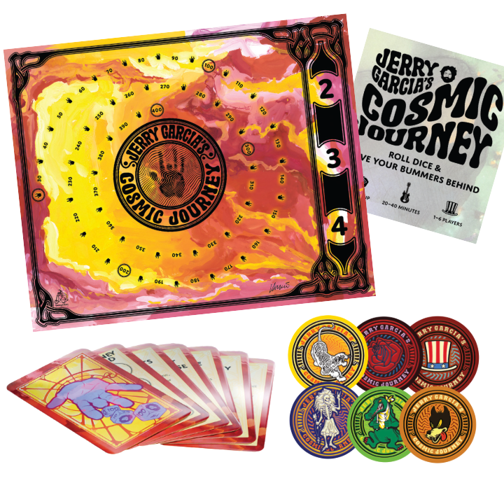 Push your luck rolling dice as you take trips around a labyrinth of Jerry’s art, picking up bummer tokens based on your score. When all bummers have been claimed, journey home and be the first to get rid of them to win!