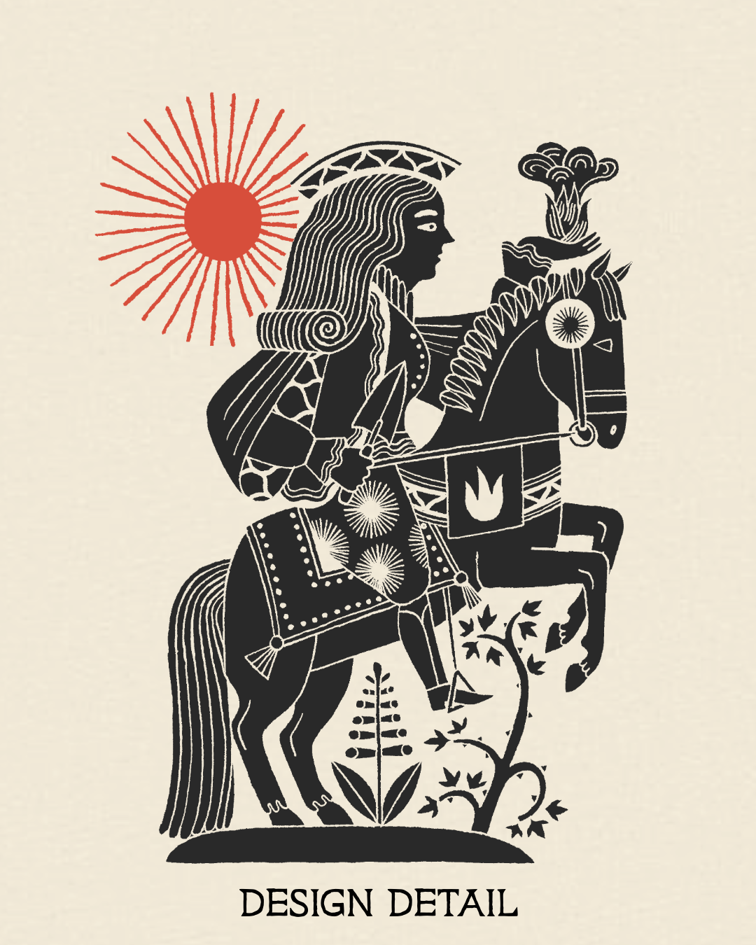 Carson Ellis' illustration of The Knight of Summer is the perfect vibe for the season. What did you do on your summer vacation? Oh, I held fire in one hand and was ready reap the bounty of a field with the other. Legendary.