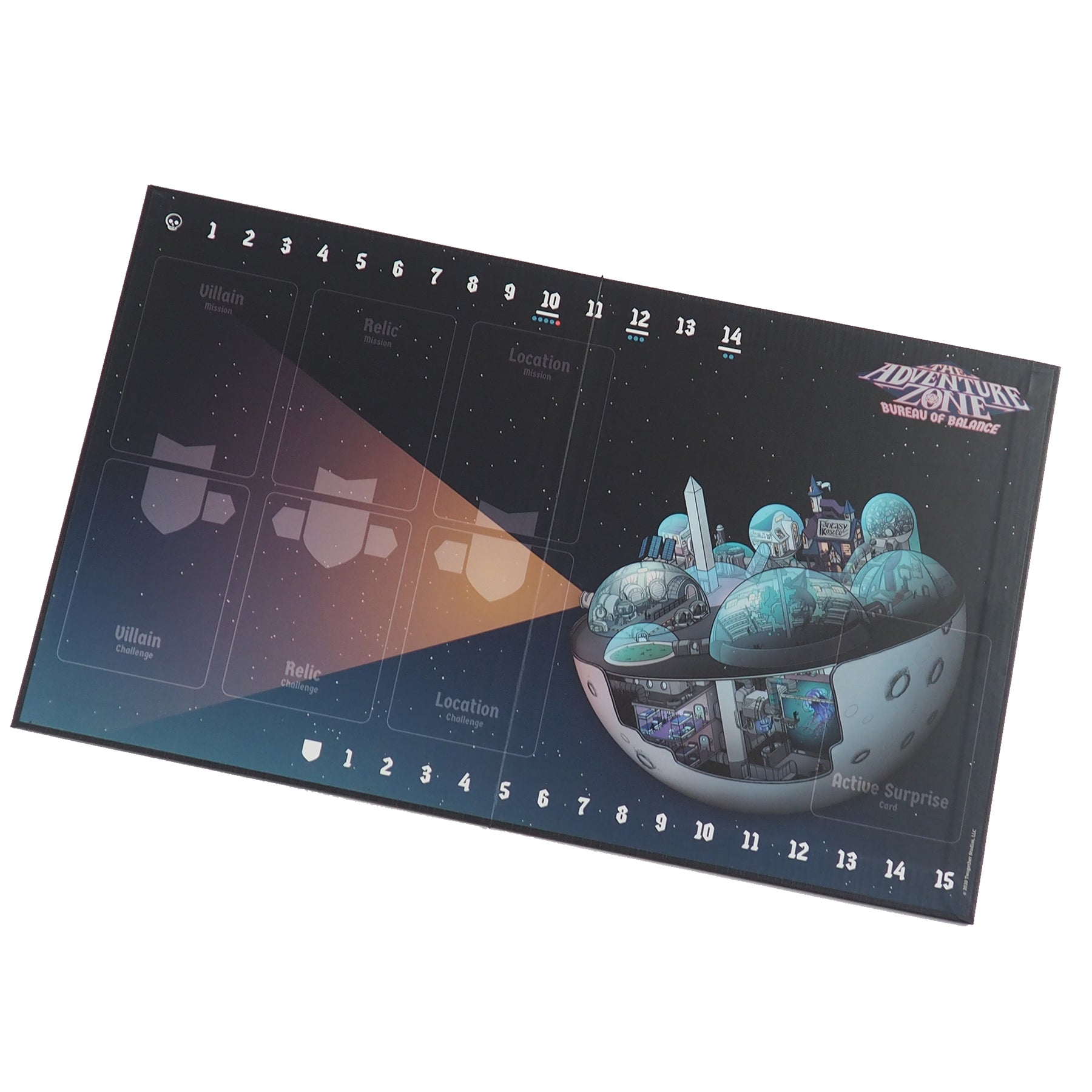 TAZ: Bureau of Balance uses a modular card system to dynamically generate missions. One night you may find yourself fighting sarcastic specters as you make your way through haunted caverns, while your next mission might pit you against cunning gerblins on a train racing towards a perilous destination. With 12 decks of double-sided cards as a foundation, TAZ: Bureau of Balance provides players with over 120 hours of unique challenges. Perfect for family game night or when your adventuring party- just wants to party.